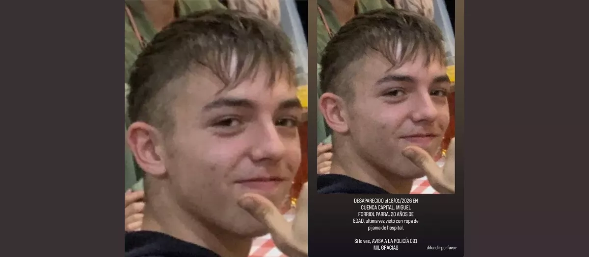 La Policía Nacional de Cuenca ha activado un dispositivo de búsqueda para localizar a Miguel Forriol, un joven de 20 años desaparecido desde este domingo tras fugarse de la Unidad de Salud Mental del Hospital Universitario de Cuenca.