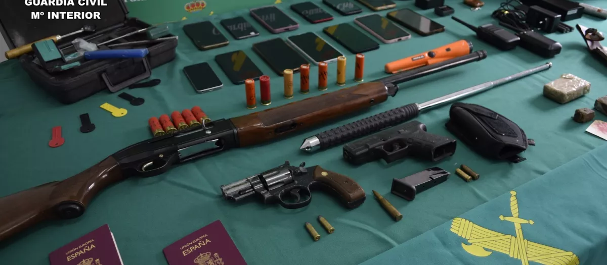 Como resultado de estas actuaciones, durante el pasado mes de diciembre se procedió a la detención de siete personas, cuatro mujeres y tres hombres, de entre 20 y 71 años, y los agentes se incautaron de varias armas de fuego cortas (una de ellas un revólver municionado y dispuesto para su uso), munición de diferente calibre, tres vehículos a motor, balizas GPS, teléfonos móviles, llaves maestras, ganzúas y una escopeta de caza presuntamente sustraída en otro 'vuelco' de droga. También intervinieron 155 gramos de hachís y una plantación 'indoor' de marihuana compuesta por 226 plantas.