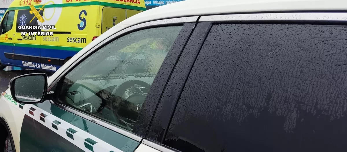 Uno de los vehículos de la Guardia Civil junto a una ambulancia del Sescam