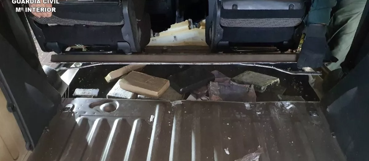Una vez allí, se revisaban todas las zonas que, una vez más, volvió a marcar el perro especializado en la detección de estupefacientes. Levantando los asientos y la moqueta se consiguió vislumbrar a través de una rendija lo que parecían ser unos paquetes de color verdoso, marrón y negro.