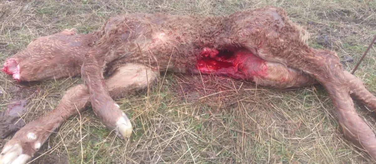 Detalle de la herida mortal de un ternero causado por un lobo
