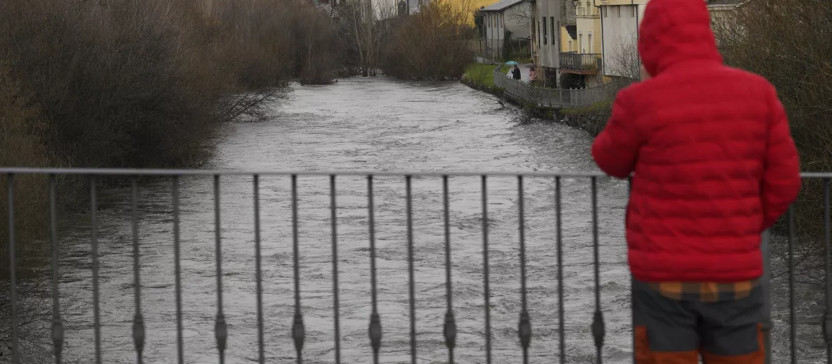 Aumento del caudal del río Cúa a su paso por Cacabelos (León), debido a las intensas lluvias de los últimos días
