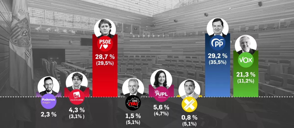 Ante este reparto de fuerzas, el resto de las formaciones que obtendrían escaños, como Unión del Pueblo Leonés (4), Soria Ya (2), A por Ávila (1) o IU-Sumar (1) se convierten en irrelevantes para formar cualquier gobierno.