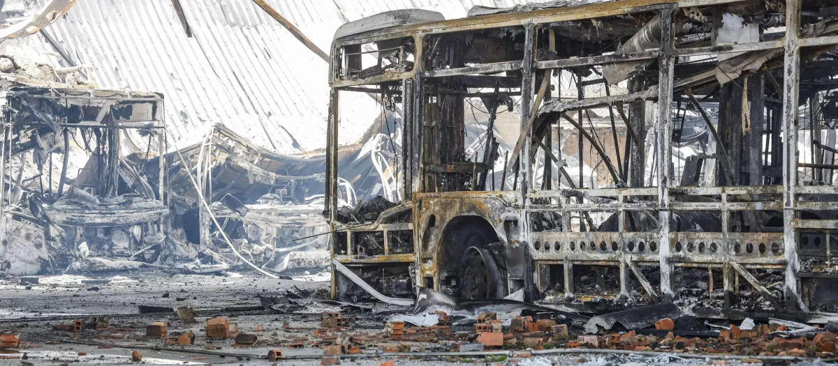 Un «voraz» incendio en la nave de las cocheras arrasó con la mitad de la flota de vehículos urbanos