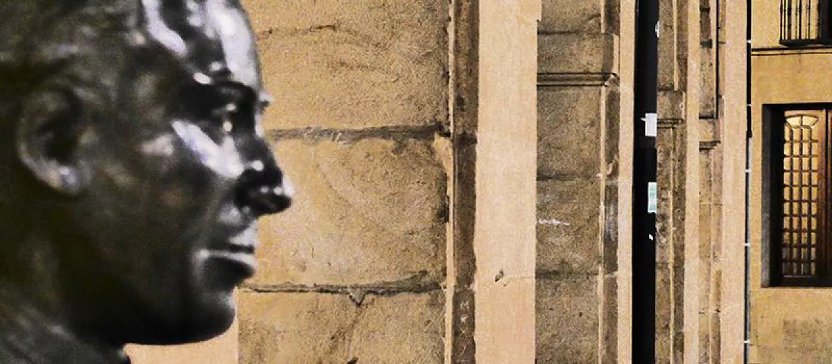Escultura de Machado en el instituto soriano que lleva su nombre