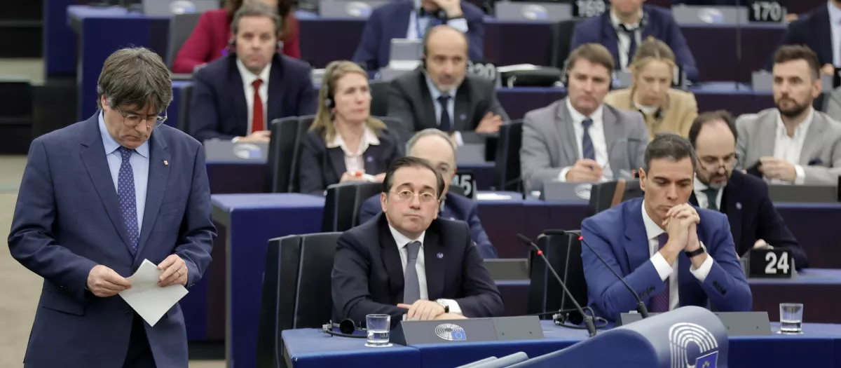 Lo más cerca que han estado físicamente Puigdemont y Sánchez fue el 13 de diciembre de 2023, cuando ambos coincidieron dentro del hemiciclo del Parlamento Europeo. Sánchez acudía a presentar el balance de su accidentada presidencia de turno de la Unión, y Puigdemont asistía como eurodiputado.