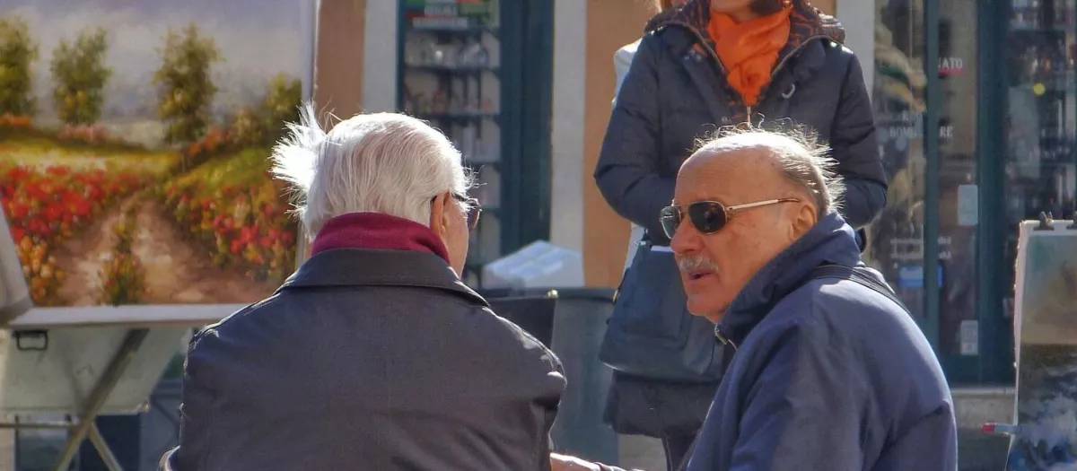Dos ancianos conversan en la calle, en una imagen de archivoUnsplash