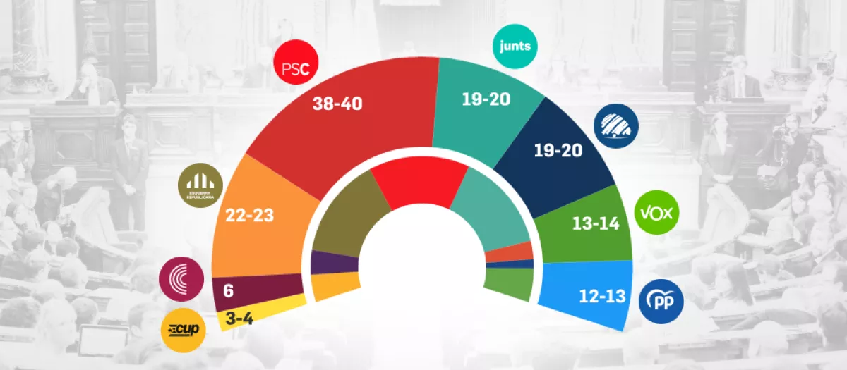 En segundo lugar quedaría ERC, que sube un poco respecto a su resultado actual, pasando de los 20 escaños a entre 22 y 23. Otro de los titulares del barómetro es el sorpasso de Vox al PP: el partido verde obtendría entre 13 y 14 escaños, mientras que los populares perderían entre dos y tres diputados, quedándose en entre 12 y 13. PP y Vox se juegan entre ellos un diputado en Barcelona y Gerona, según estos datos.