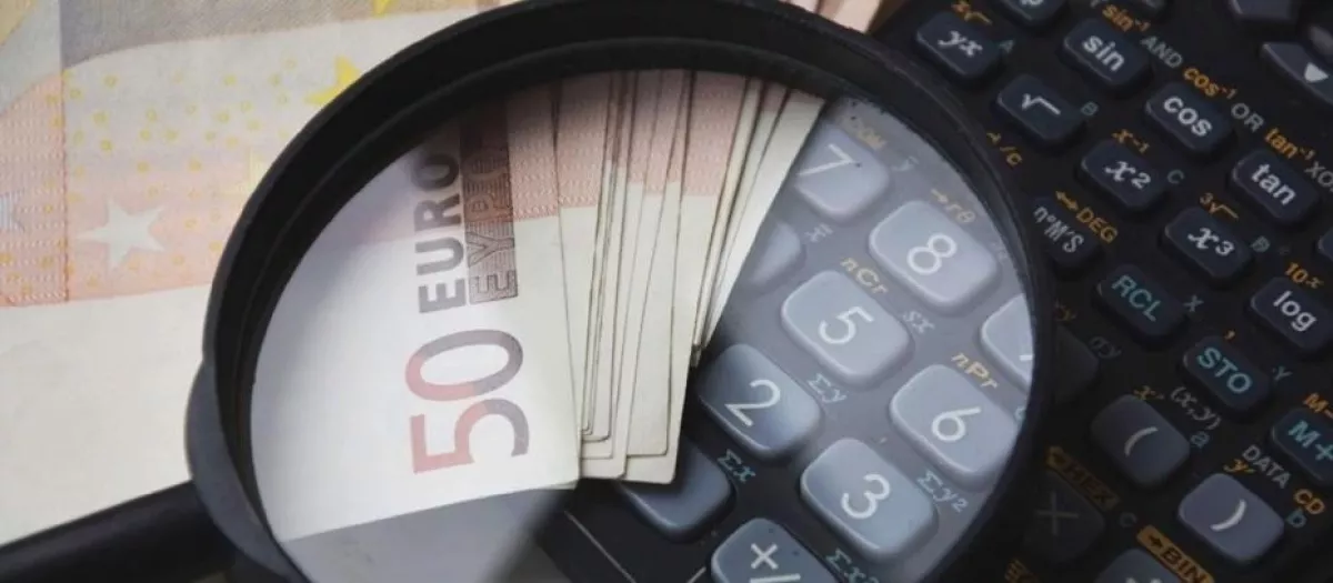 Billetes y calculadora ilustran la emisión de deuda en Andalucía.