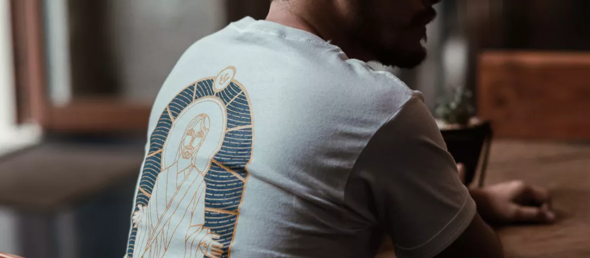 Un hombre con una camiseta de Jesucristo, en una imagen de archivo