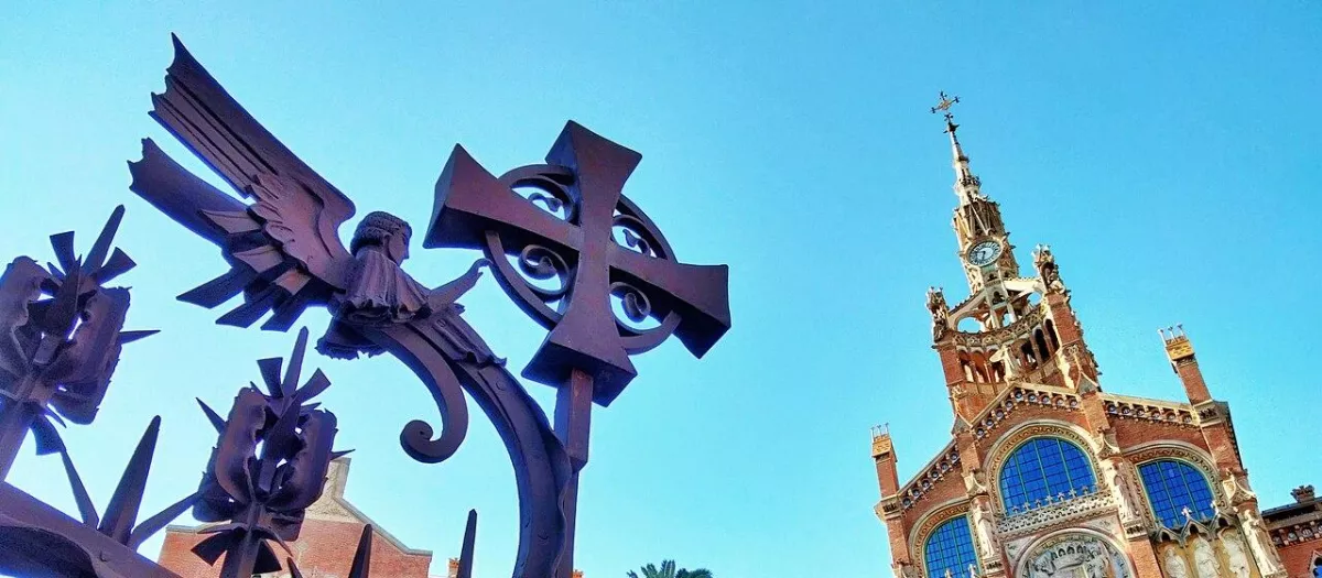 Entrada al recinto modernista del Hospital de Sant Pau, en Barcelona