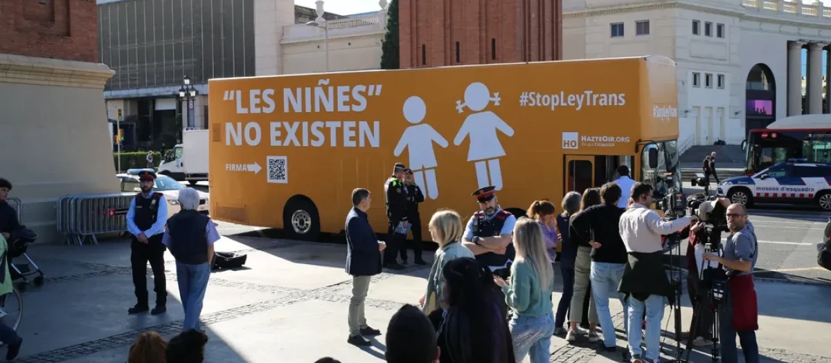 Una jueza del contencioso administrativo de Barcelona ha confirmado la multa de 20.000 euros que impuso el gobierno de la Generalitat en 2023, durante la pasada legislatura, a la asociación Hazte Oír (HO) con motivo del autobús crítico con la Ley Trans que pasearon por las calles de Barcelona. El vehículo lucía mensajes como «les niñes no existen» o «no a la mutilación infantil».