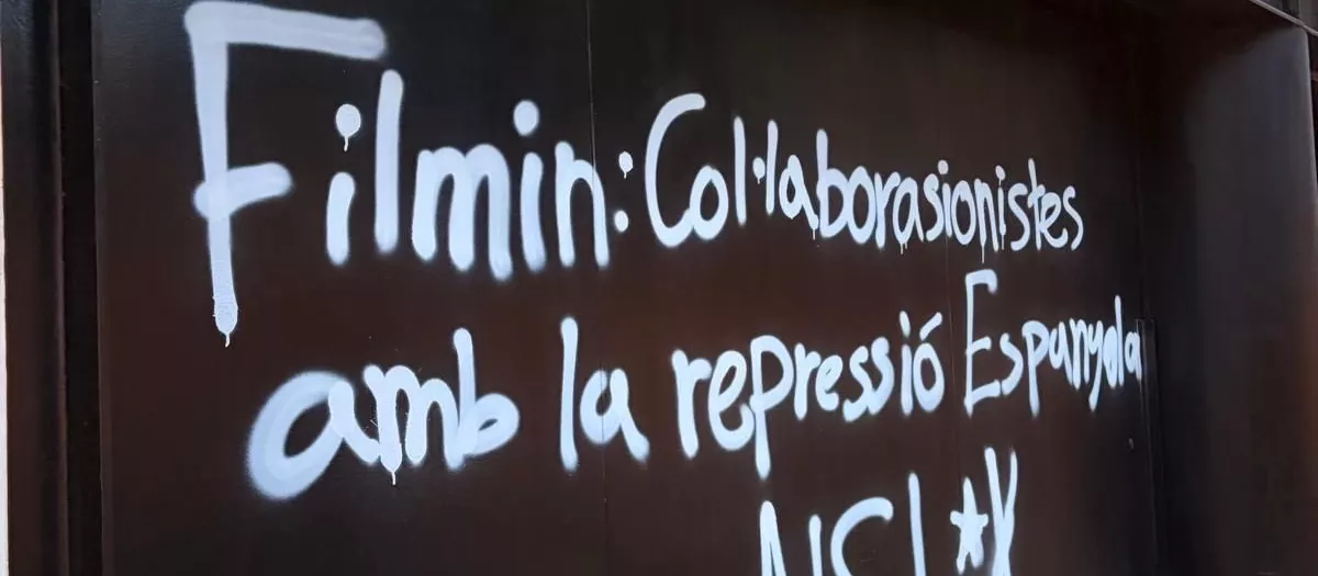 Este lunes la polémica arreció en redes sociales, con un reguero de caras conocidas en el mundillo independentista anunciando que se daban de baja de Filmin, y este martes el conflicto ha saltado a la calle. En concreto, a la calle Platón de Barcelona, donde la empresa tiene su sede: esta ha amanecido con pintadas que les acusan de «colaboracionistas con la represión española».