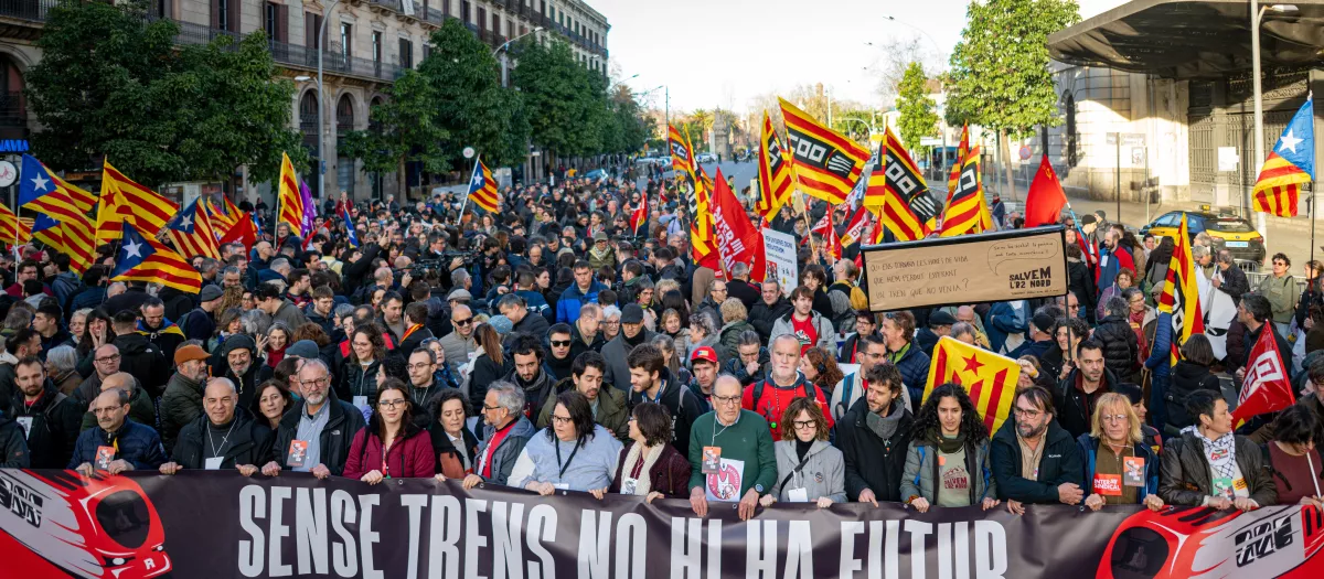 Miles de personas se han concentrado en Barcelona para denunciar la situación crítica que vive Rodalies. Los convocantes, entre ellos plataformas de usuarios, sindicatos y organizaciones, denuncian retrasos, falta de seguridad a causa de la «desinversión sistemática» en infraestructuras y una mala gestión de Adif, Renfe y el Gobierno de España y de Cataluña. Según las asociaciones han asistido unas 40.000 personas.
