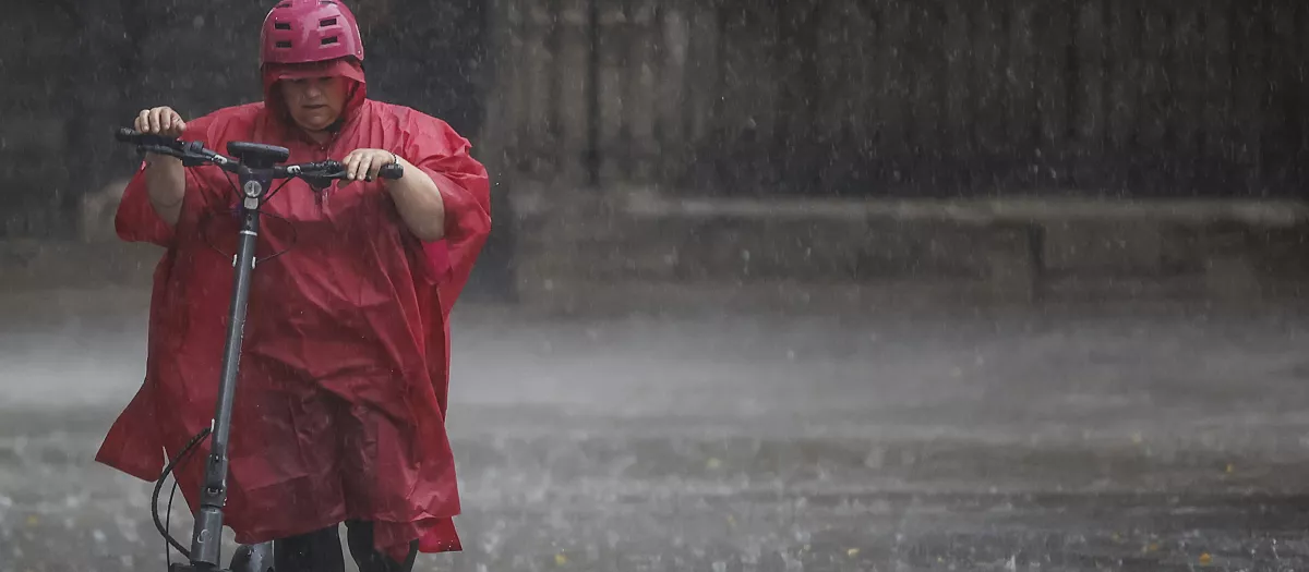 Imagen de una persona caminando bajo la lluvia en Valencia