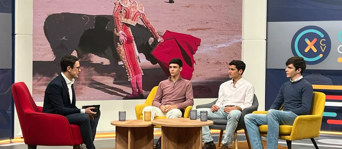 Los tres novilleros han visitado este jueves las instalaciones de la radiotelevisión valenciana en Burjassot para participar en los magacines matinales Connexió Comunitat Valenciana con Clara Castelló y Juanma Melero y Amunt i Avall de Sergi Olcina, donde han mostrado su ambición por deleitar al público y ganar esta gran final.