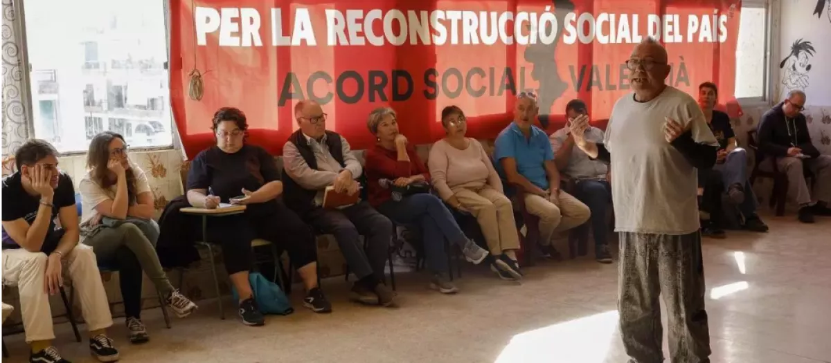 Toni Valero, miembro de la comisión de enlace del Acord Social, ha explicado que durante el encuentro «continúa la lucha para exigir el enjuiciamiento de Mazón y de su Consell por las responsabilidades penales que puedan tener» y, al mismo tiempo, se mantiene el compromiso «para lograr la reconstrucción social y contra las políticas del Gobierno del PP y de Vox».