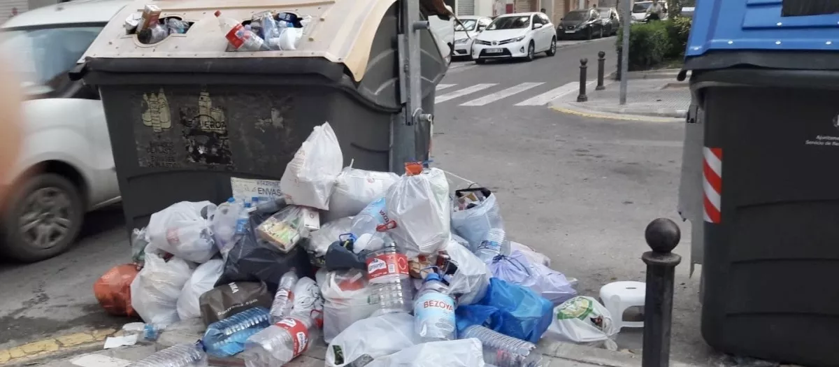 Imagen de archivo de basura acumulada en contenedores de un barrio de Valencia