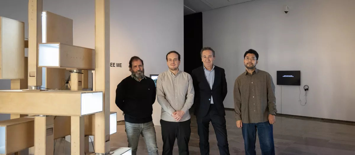 El director-gerente del Consorci de Museus de la Comunitat Valenciana, Nicolás Bugeda, acompañado por Ana Esteve, Cayetano Limorte y uno los artistas de ‘Circuito Cerrado’, Kei Uruno, ha presentado las exposiciones.