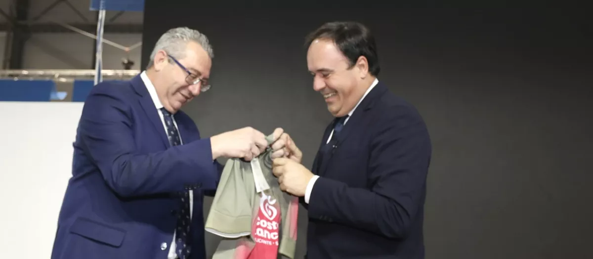El presidente de la Diputación de Alicante, Toni Pérez, y el presidente de la Generalitat Valenciana, Juanfran Pérez Llorca, durante la presentación de La Vuelta