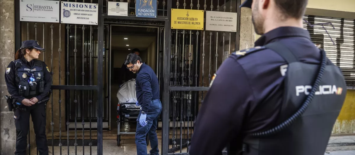 Imagen de archivo del momento en el que la Policía Nacional saca el cuerpo del canónigo de la Catedral de Valencia de su domicilio