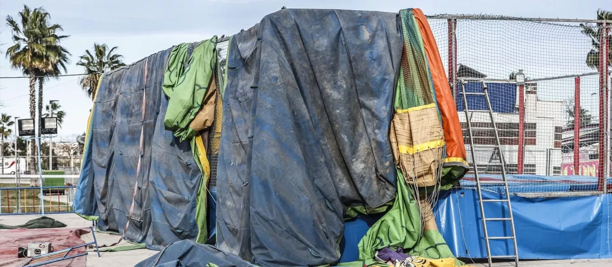 Atracción hinchable en la que ha fallecido una niña, en la feria de Mislata, a 5 de enero de 2022, en Mislata, Valencia (España). Una de los nueve menores heridos al tumbar el viento una atracción infantil hinchable en la Feria de Mislata, ha fallecido en el hospital donde se encontraba hospitalizada. La menor de ocho años se encontraba en la feria el pasado 4 de enero, cuando el hinchable fue levantado por el viento y tumbó la atracción. Otra menor sigue hospitalizada con pronóstico reservado.  Como consecuencia, el ayuntamiento de la localidad ha acordado la suspensión de todos los actos municipales previstos, incluyendo la Cabalgata de Reyes y ha declarado luto oficial en el municipio durante tres días.
