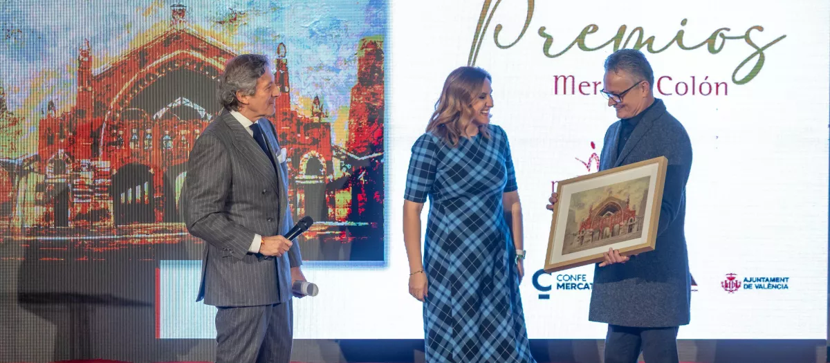 El Mercado de Colón se vistió de gala para rendir homenaje a valencianos que inspiran con su trabajo y su pasión. La ceremonia reunió a numerosos valencianos y vecinos y tuvo lugar en la plaza de acceso por Jorge Juan, con un escenario diseñado para la ocasión. Los primeros Premios Mercado de Colón reconocieron a figuras que han marcado la diferencia en comunicación, cultura, deporte, ciencia, empresa y gastronomía, en una noche cargada de emoción y orgullo para Valencia. Ángela Pérez, José Manuel Casañ, José Manuel Rodríguez Uribes, Pablo Motos y Ricard Camarena recibieron una serigrafía numerada de un cuadro especial del Mercado realizado por Horacio Silva. La alcaldesa de Valencia y la familia del arquitecto creador del edificio, Francisco Mora, recibieron un premio especial.