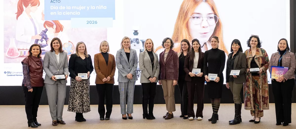 Con motivo del Día Internacional de la Mujer y la Niña en la Ciencia, el Vicerrectorado de Investigación y Transferencia de la Universidad CEU Cardenal Herrera (CEU UCH) ha organizado en su Paraninfo un evento dirigido a más de 200 universitarios y preuniversitarios. El objetivo de las actividades es promover entre los y las jóvenes nuevas vocaciones científicas, visibilizando a mujeres relevantes en diversos ámbitos de la ciencia. También se ha reconocido a seis investigadoras y profesoras de la CEU UCH que han recibido los Premios Mujer en la Ciencia 2026, en los ámbitos de la Salud, la Veterinaria, el Derecho, la Comunicación, la Ingeniería y la Educación. Las premiadas han compartido con los jóvenes asistentes su vocación por la ciencia y su trayectoria, para inspirar y motivar hacia la carrera científica a los y las jóvenes participantes.