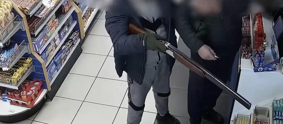 Imagen de los dos hombres atracando una gasolinera armados con una escopeta en Valencia