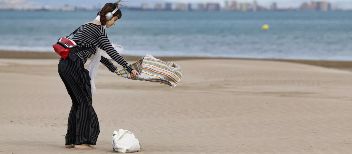 Imagen tomada este miércoles de fuertes rachas de viento en la playa de Las Arenas de Valencia