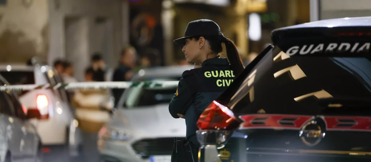 Imagen de una agente de la Guardia Civil junto a la casa en la que se produjo el doble crimen