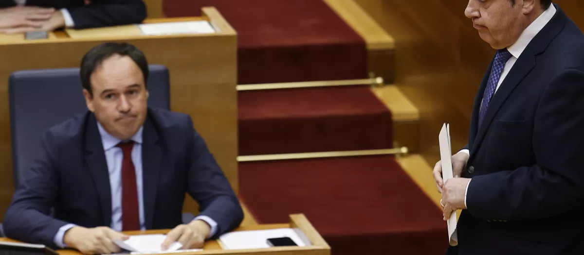 Imagen de Pérez Llorca y José María Llanos, portavoz de Vox, tomada en las Cortes ValencianasEP