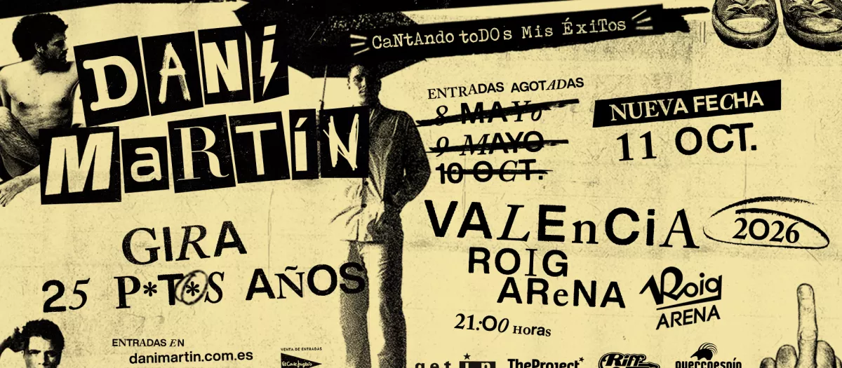 Dani Martín ofrecerá un cuarto concierto en el Roig Arena el próximo 11 de octubre en el marco de su gira «25 P*t*s Años». Esta nueva fecha se suma a los tres conciertos previamente anunciados que están programados para el 8 y 9 de mayo y para el 10 de octubre.