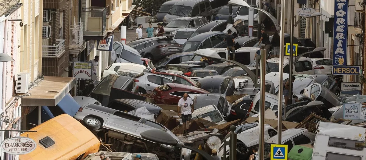 Imagen de archivo de vehículos amontonados en Picaña, Valencia, por la dana del 29 d eoctubre de 2024