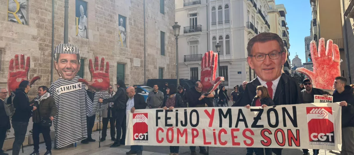Imagen tomada este martes de una protesta de víctimas de la dana contra Carlos Mazón y Alberto Núñez Feijóo frente a las Cortes Valencianas