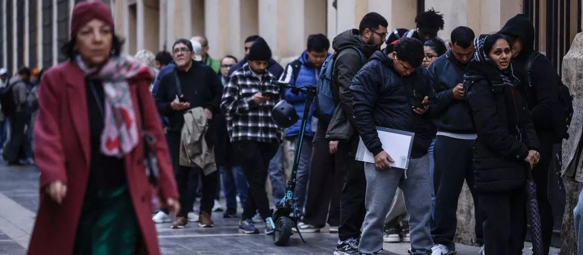 Decenas de inmigrantes hacen cola en el Ayuntamiento de Valencia por la regularización masiva del Gobierno