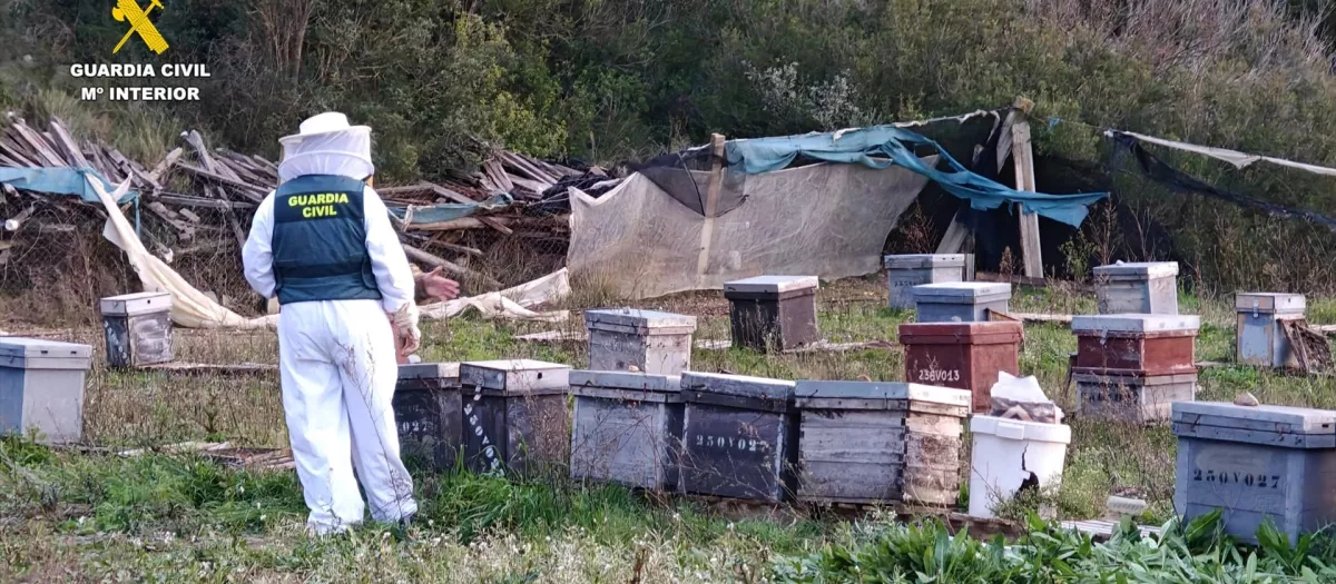 Un agente de la Guardia Civil en la explotación apícola clandestina