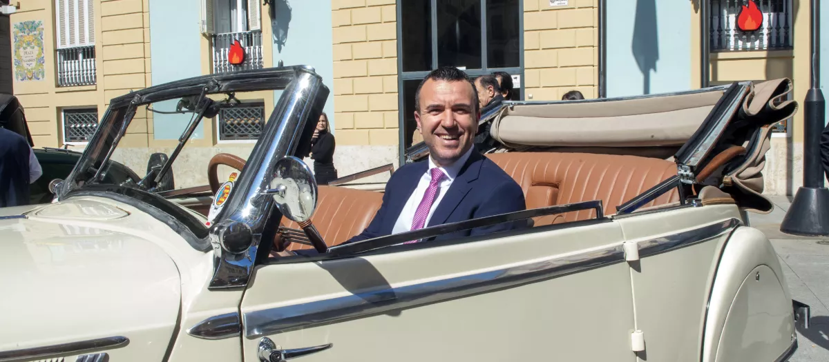 Vicent Mompó montado en uno de los coches de épocaRaquel Abulaila