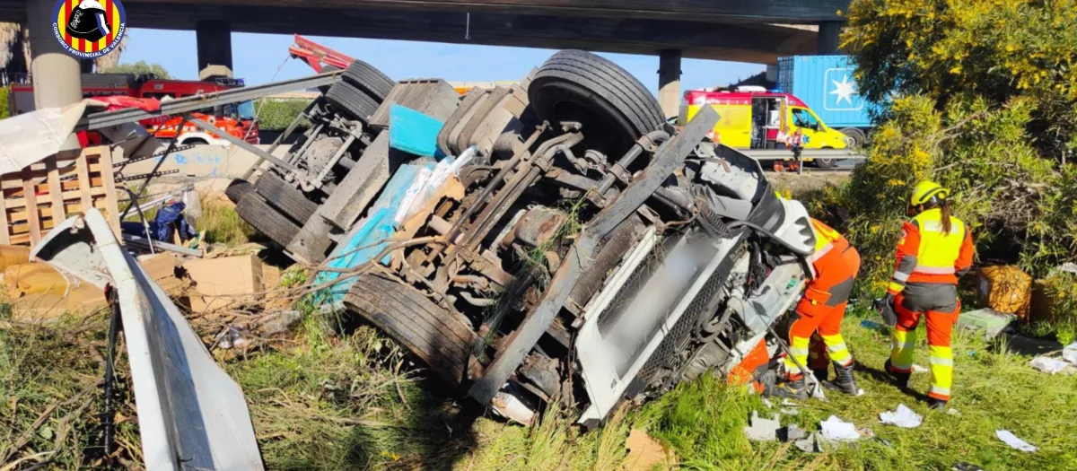 El conductor de un camión ha muerto al salir de la carretera, en la V-31 a la altura de Silla (Valencia), volcar y quedar atrapado debajo del vehículo.