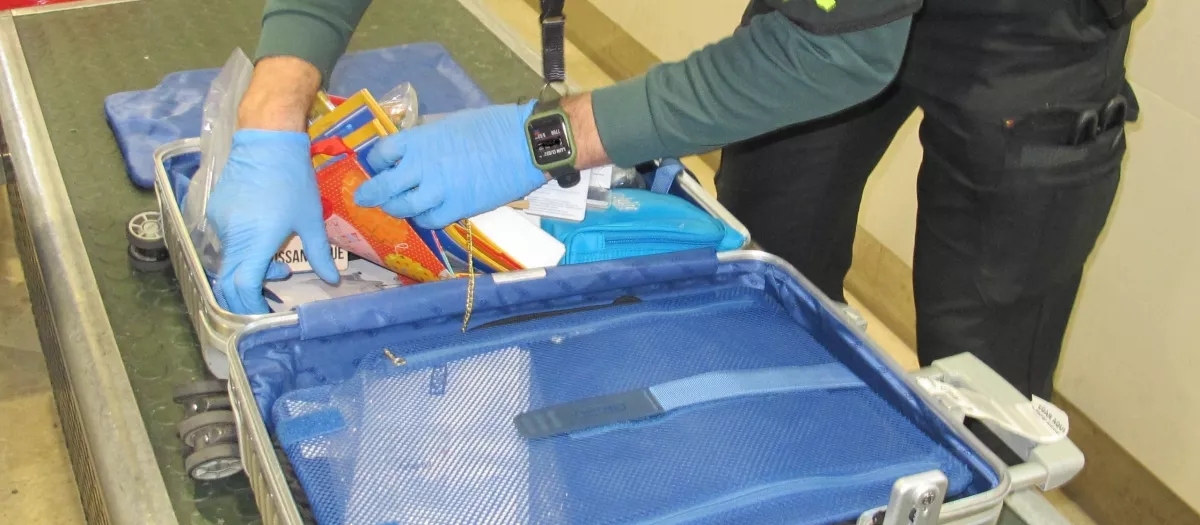 Los agentes, cuando controlaban vuelos con conexiones internacionales, identificaron aleatoriamente a un pasajero de nacionalidad mexicana, procedente de México, y con tránsito en Aeropuerto de Barajas (Madrid), que llevaba una maleta facturada a su nombre, explica la Benemérita en un comunicado.