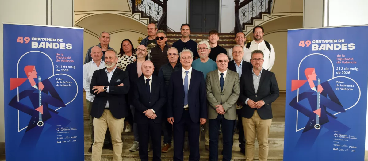 La Diputación demuestra un año más su implicación con la música de banda, y van 49, lo que supone estar «en vísperas de un 50 aniversario que será muy exclusivo y al que llegamos con una respuesta masiva de las sociedades musicales», destaca el diputado de Bandas de música, Ricardo Gabaldón. Él ha sido el anfitrión de la puesta en escena del Certamen de Bandas que se celebrará el 2 y 3 de mayo en el Palau de la Música, el primero en tomar la palabra tras los acordes de 'La vida es bella' y 'Cinema Paradiso' interpretados por el cuarteto Elle Sax. «Qué mejor manera de presentar la música que disfrutando de ella…».