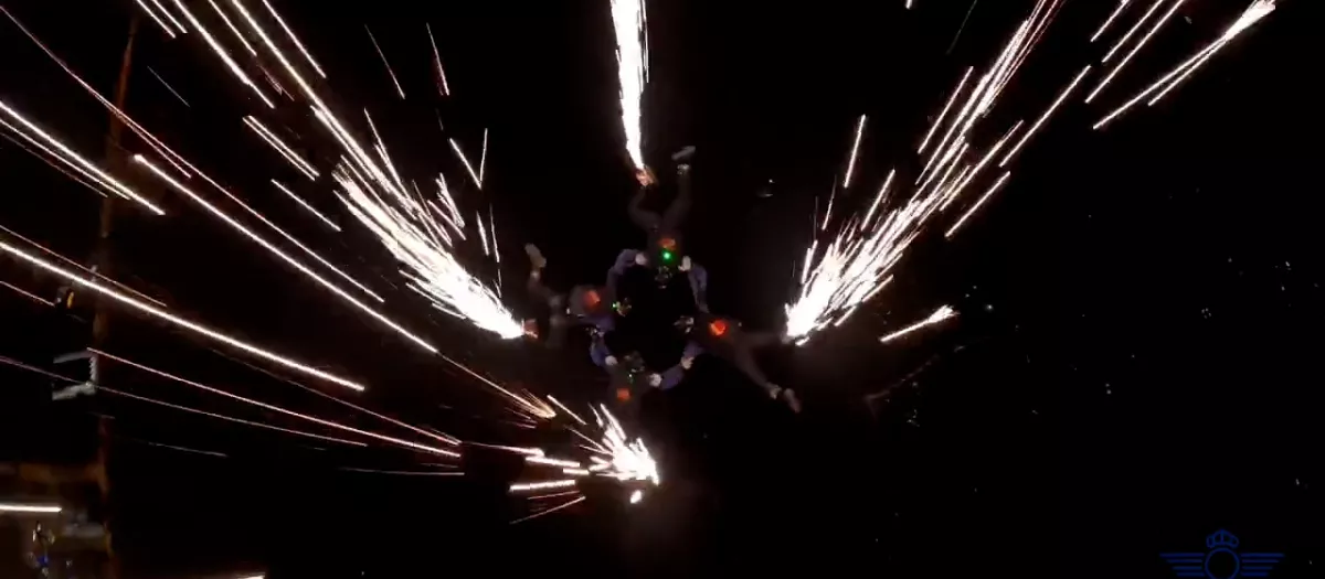 Cuatro miembros de la Patrulla Acrobática de Paracaidismo sorprenden iluminando con sus acrobacias aéreas