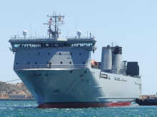 El S-81 Isaac Peral toca agua por primera vez en Cartagena, en el muelle de armamento del astillero de Navantia
