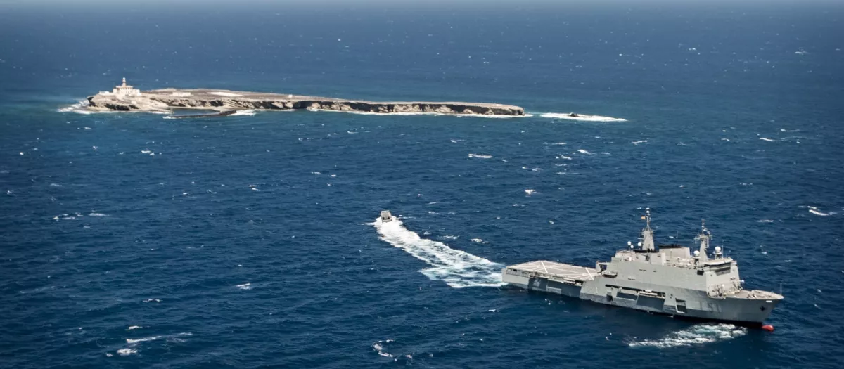 El Buque de Asalto Anfibio Galicia (L-51) vigila la isla de Alborán