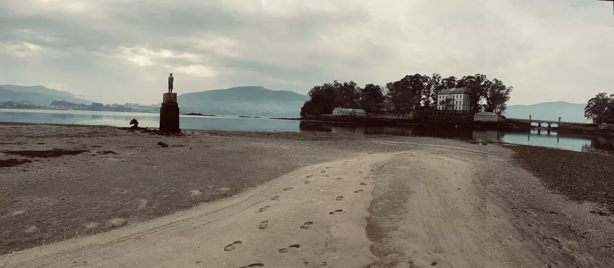 Panorama de la Isla de San Simón desde la playa de Cesantes, Redondela.Olaia