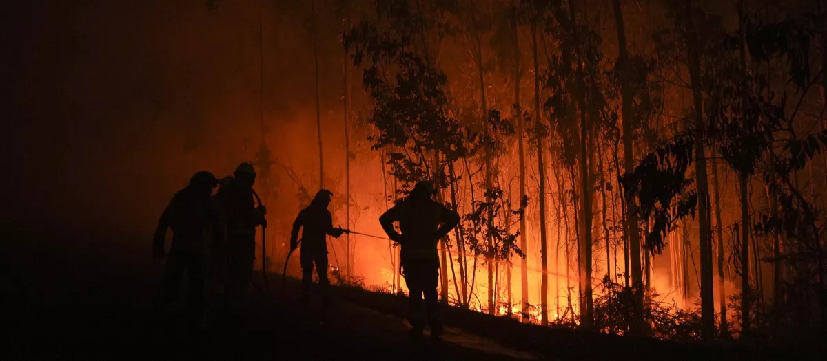 Varios bomberos trabajan para extinguir el fuego en Galicia