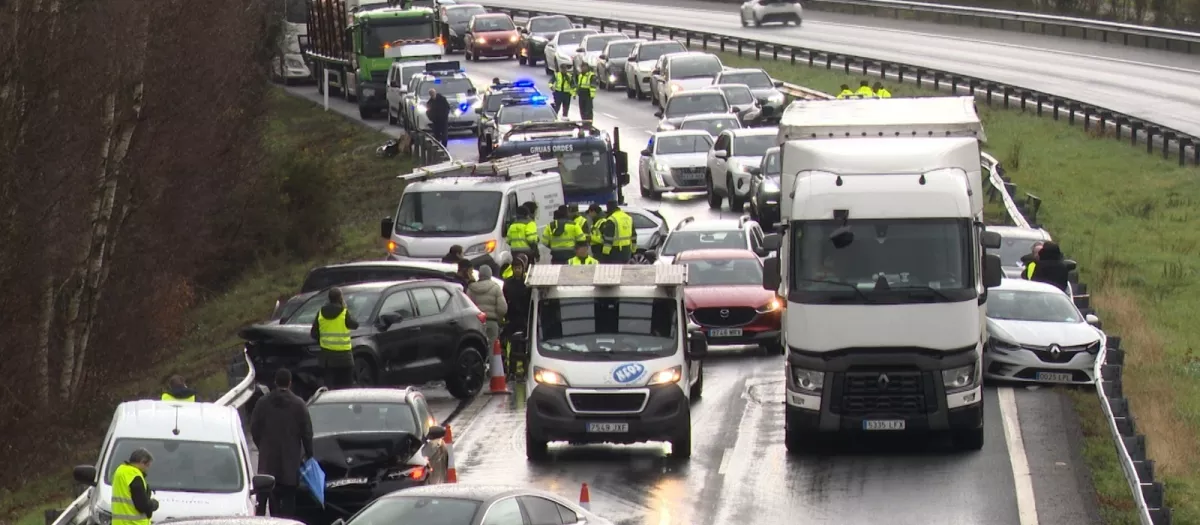 El accidente se produjo entre Órdenes y Sigüeiro y en él se vieron involucrados más de una decena de vehículos, lo que provocó importantes afecciones a la circulación desde primera hora de la mañana.