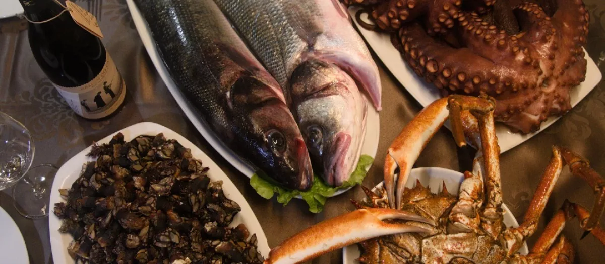 En la carta de Celeiro, el salpicón de bogavante con colas de cigala se erige como otro de los imprescindibles, compartiendo protagonismo con sus pescados salvajes de la ría, traídos directos de la lonja, y su entrecot de ternera rubia gallega.