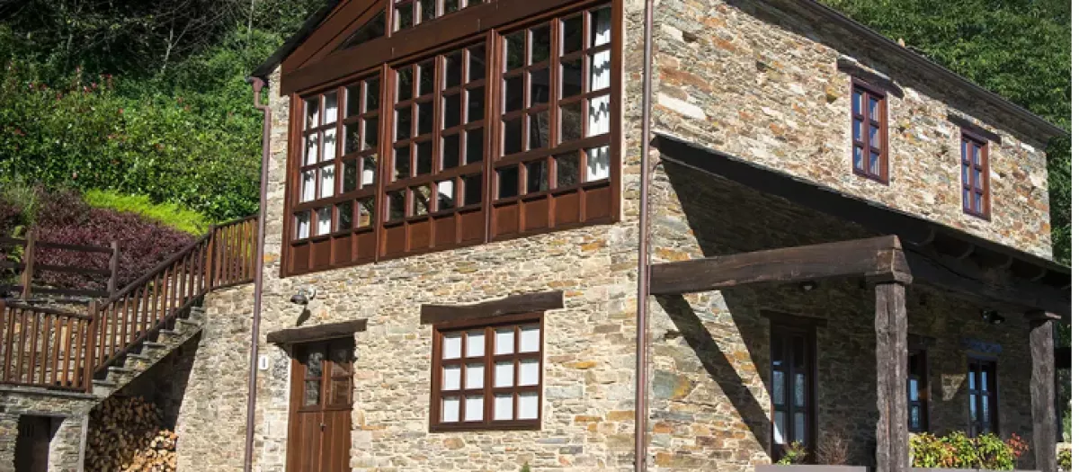 Entre ellos destaca la antigua palleira, transformada en una vivienda acogedora con vigas originales, amplios ventanales y terraza panorámica. También sobresale una casa de labranza del siglo XIX que combina piedra, madera y pizarra con interiores contemporáneos pensados para el descanso.