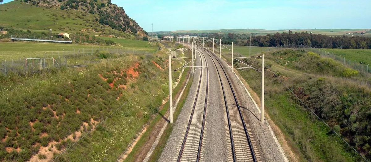 Vías de alta velocidad a su paso por Almodóvar del Río (Córdoba)